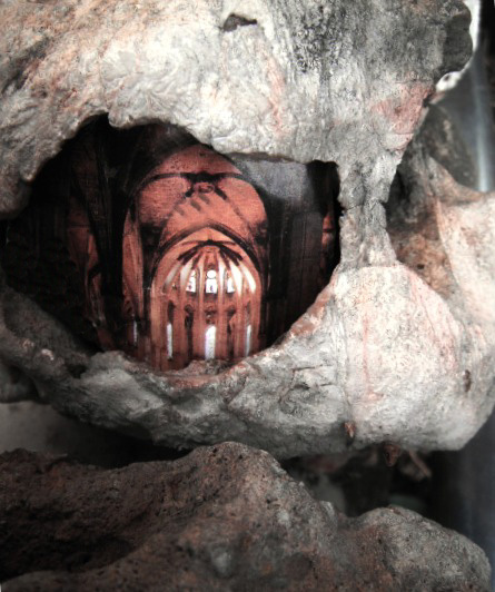 Esta imagen encerrada dentro de una piedra la utilizaré para exponer mi pensamiento en forma de metáfora, pues, aunque no parece tener tanta entidad como las montañas hasta aquí presentadas, el rostro que configuran las bóvedas góticas tiene mucha más categoría, al ser una proyección subliminal de cariz espiritual. Traspasa los límites de las bóvedas de las catedrales, y no es por el hecho de que en ellas el fenómeno de la pareidolia se vea repetido en centenares de ciudades de la Europa medieval.